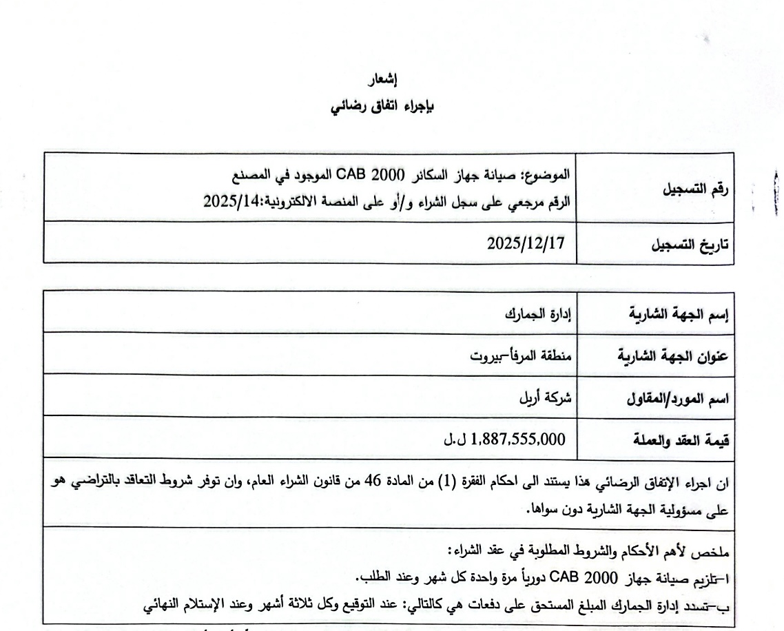 أريل هي الوكيل الحصري لجهاز ال CAB 2000 و الذي يحتاج إلى صيانة دورية وهذا العقد هو عقد صيانة لجهاز الCAB 2000