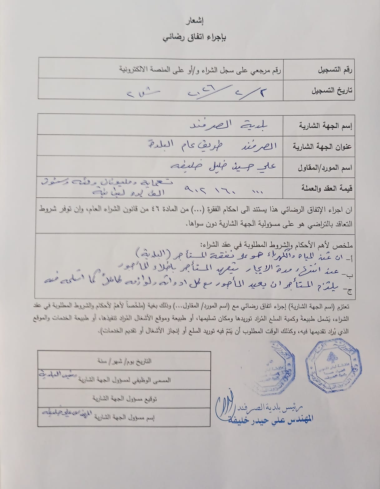 | موضوع الشراء | استئجار شقتين لزوم مركز بلدية الصرفند للعام 2026 |
