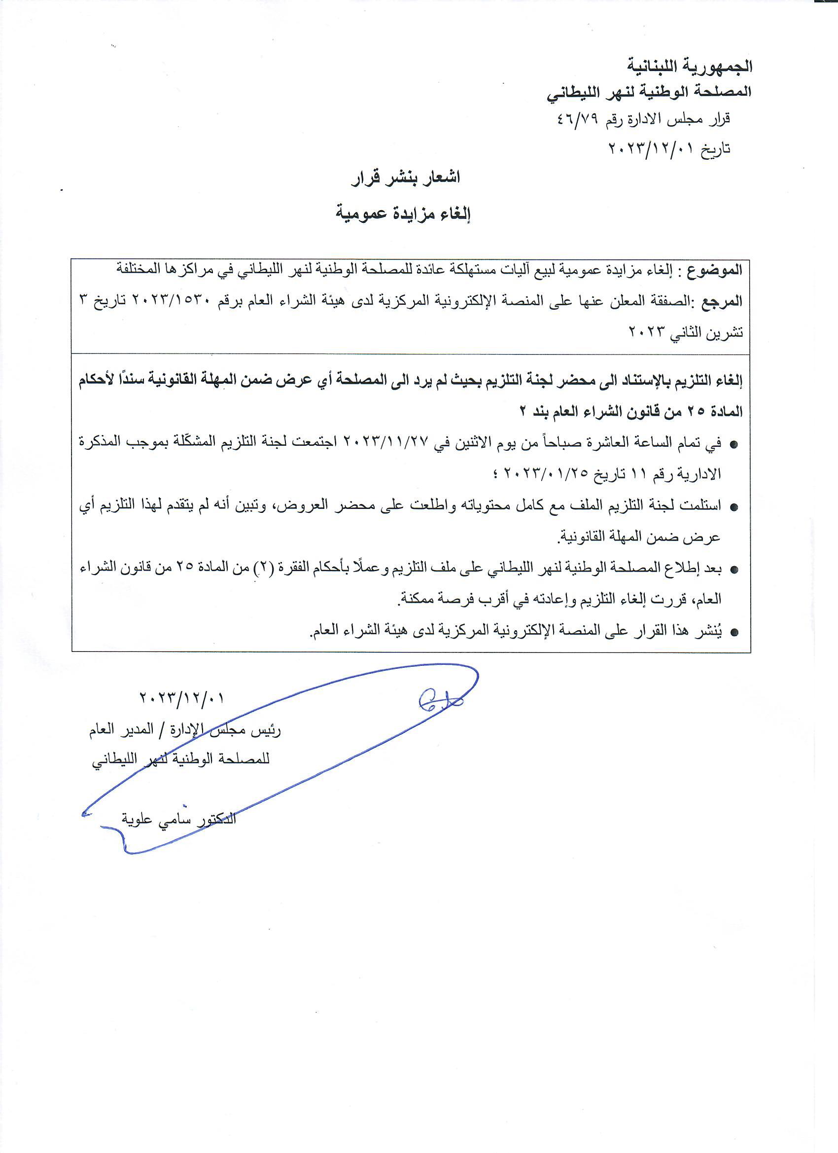 عنوان المجموعة مزايدة عمومية لبيع آليات مستهلكة عائدة للمصلحة الوطنية لنهر الليطاني في مراكزها المختلفة