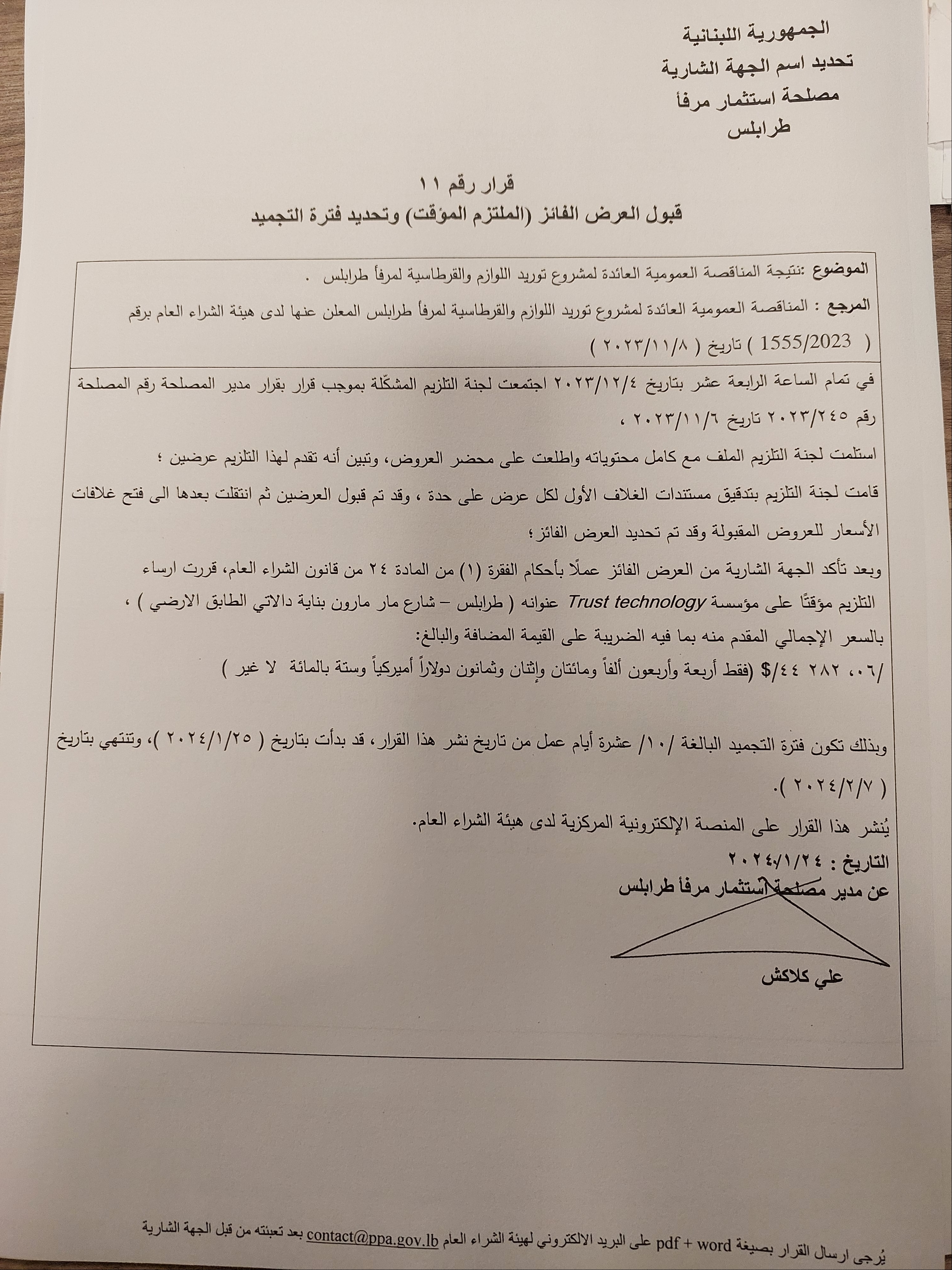 مناقصة عمومية لتوريد اللوازم والقرطاسية لمرفأ طرابلس