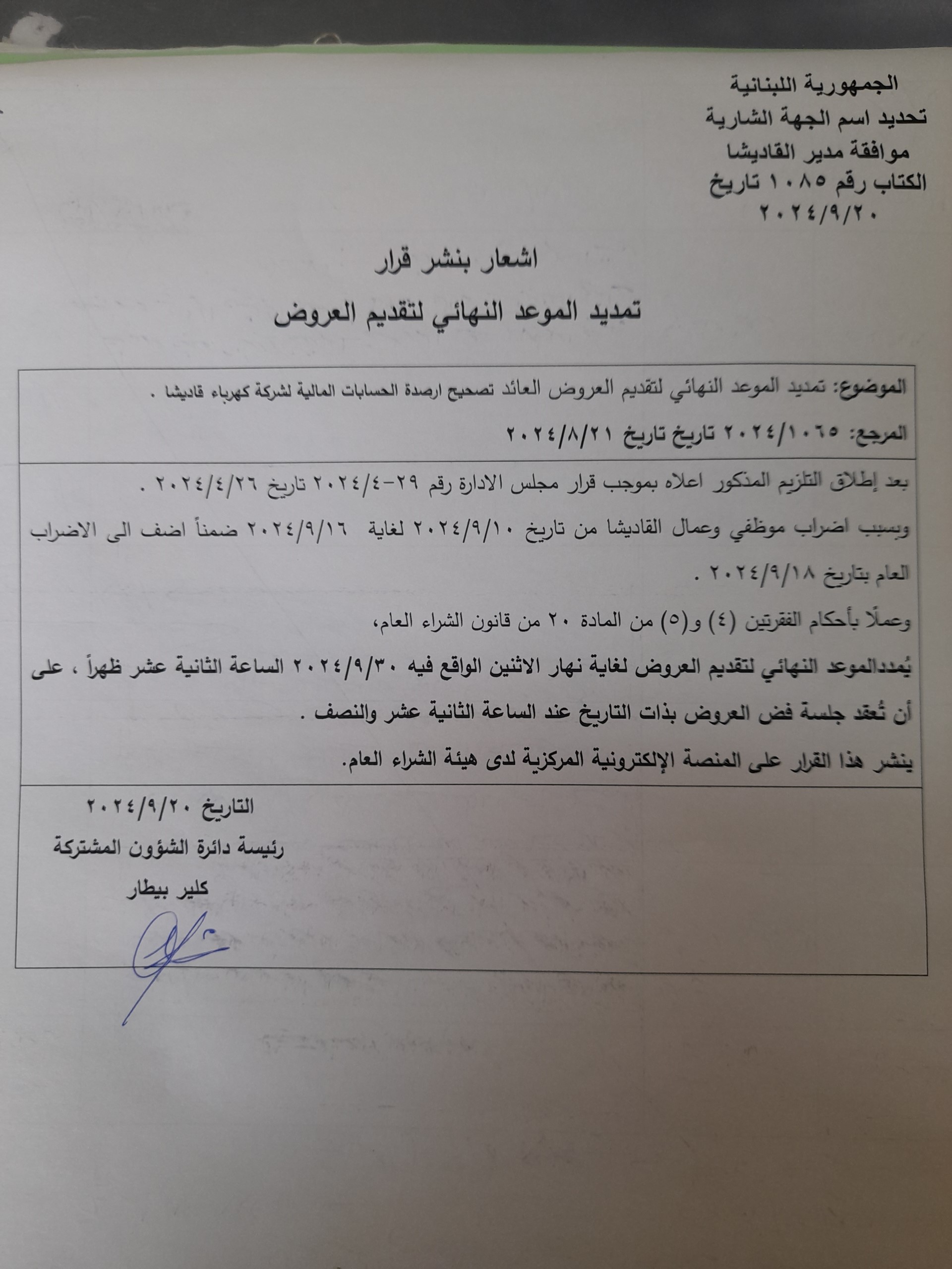 يُطلب إلى كافة الجهات الشارية أو المتعاقدة الخاضعة لأحكام قانون الشراء العام ومن أجل التحضير لتمكينها من الإعلان على المنصة الإلكترونيّة المركزيّة لدى هيئة الشراء العام، الإلتزام بالمذكرة رقم 14/ه.ش.ع/2022.