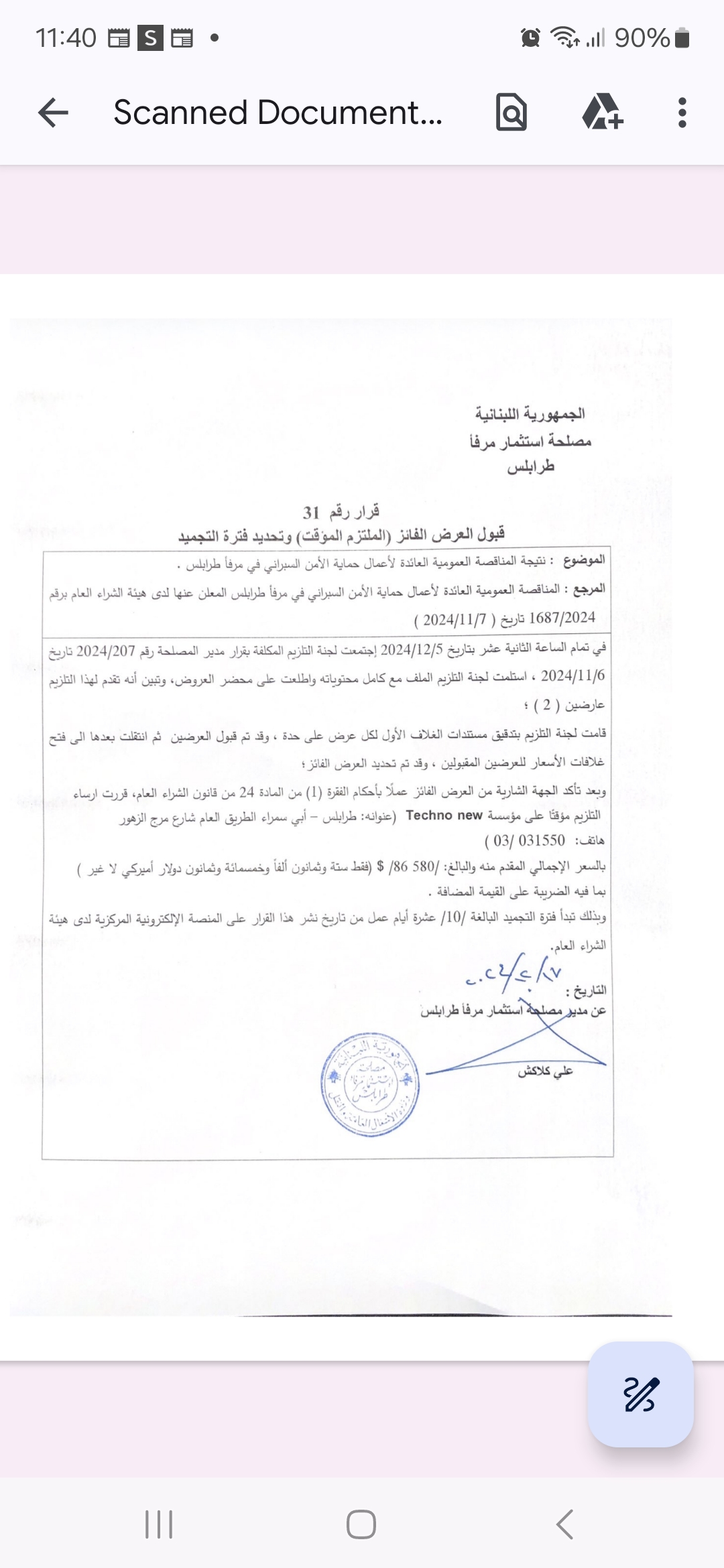 مناقصة عمومية لتنفيذ أعمال حماية الامن الأمن السبراني في مرفأ طرابلس