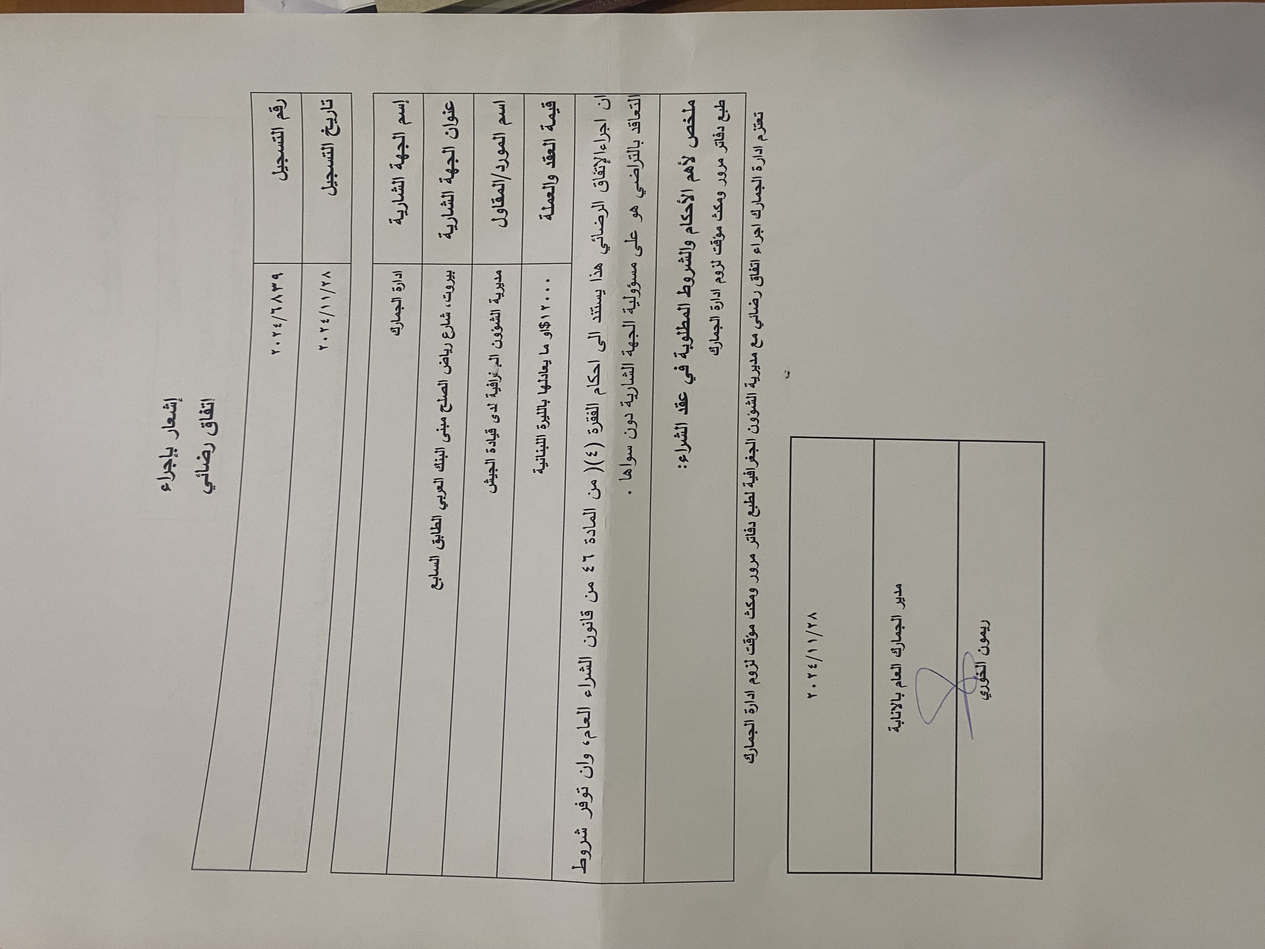 عقد اتفاق رضائي لتلزيم تأمين طبع لدفاتر مرور ومكث مؤقت