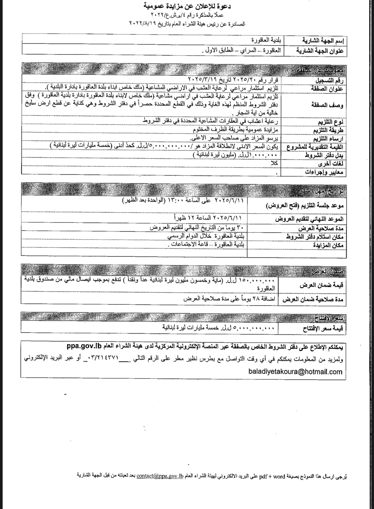 يُطلب إلى كافة الجهات الشارية أو المتعاقدة الخاضعة لأحكام قانون الشراء العام ومن أجل التحضير لتمكينها من الإعلان على المنصة الإلكترونيّة المركزيّة لدى هيئة الشراء العام، الإلتزام بالمذكرة رقم 14/ه.ش.ع/2022.