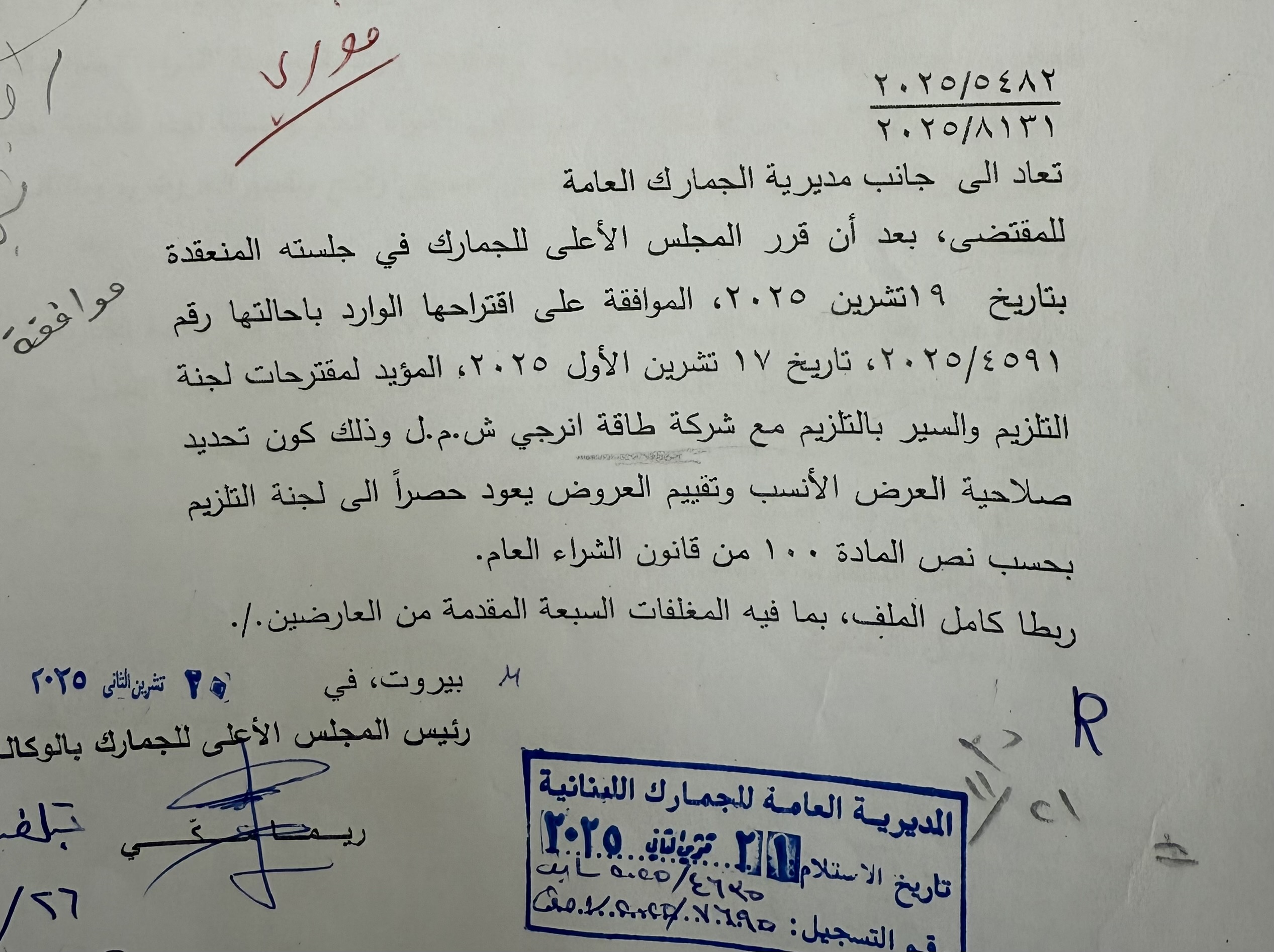 | سعر دفتر الشروط | 12600000000.00 LBP