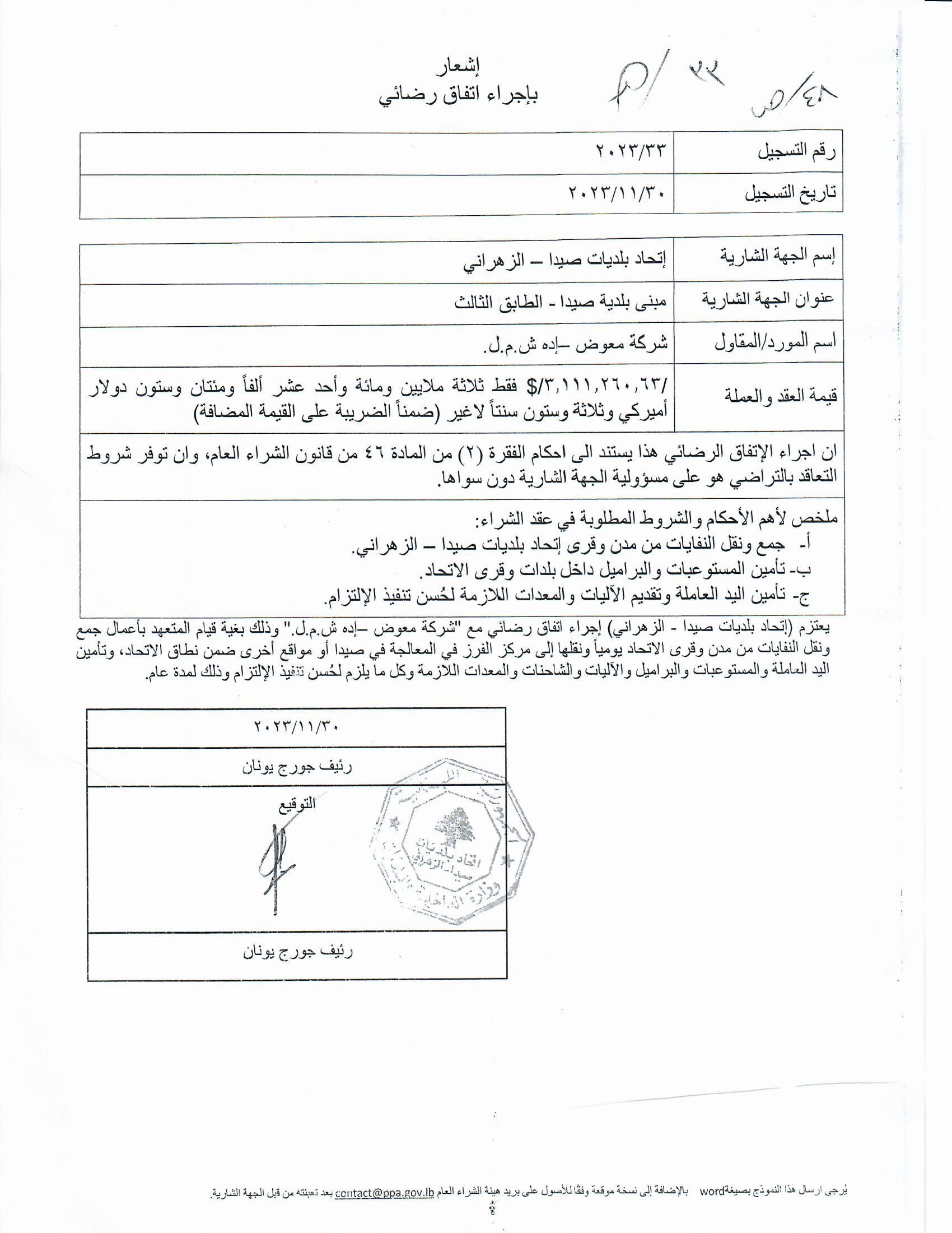 يُطلب إلى كافة الجهات الشارية أو المتعاقدة الخاضعة لأحكام قانون الشراء العام ومن أجل التحضير لتمكينها من الإعلان على المنصة الإلكترونيّة المركزيّة لدى هيئة الشراء العام، الإلتزام بالمذكرة رقم 14/ه.ش.ع/2022.