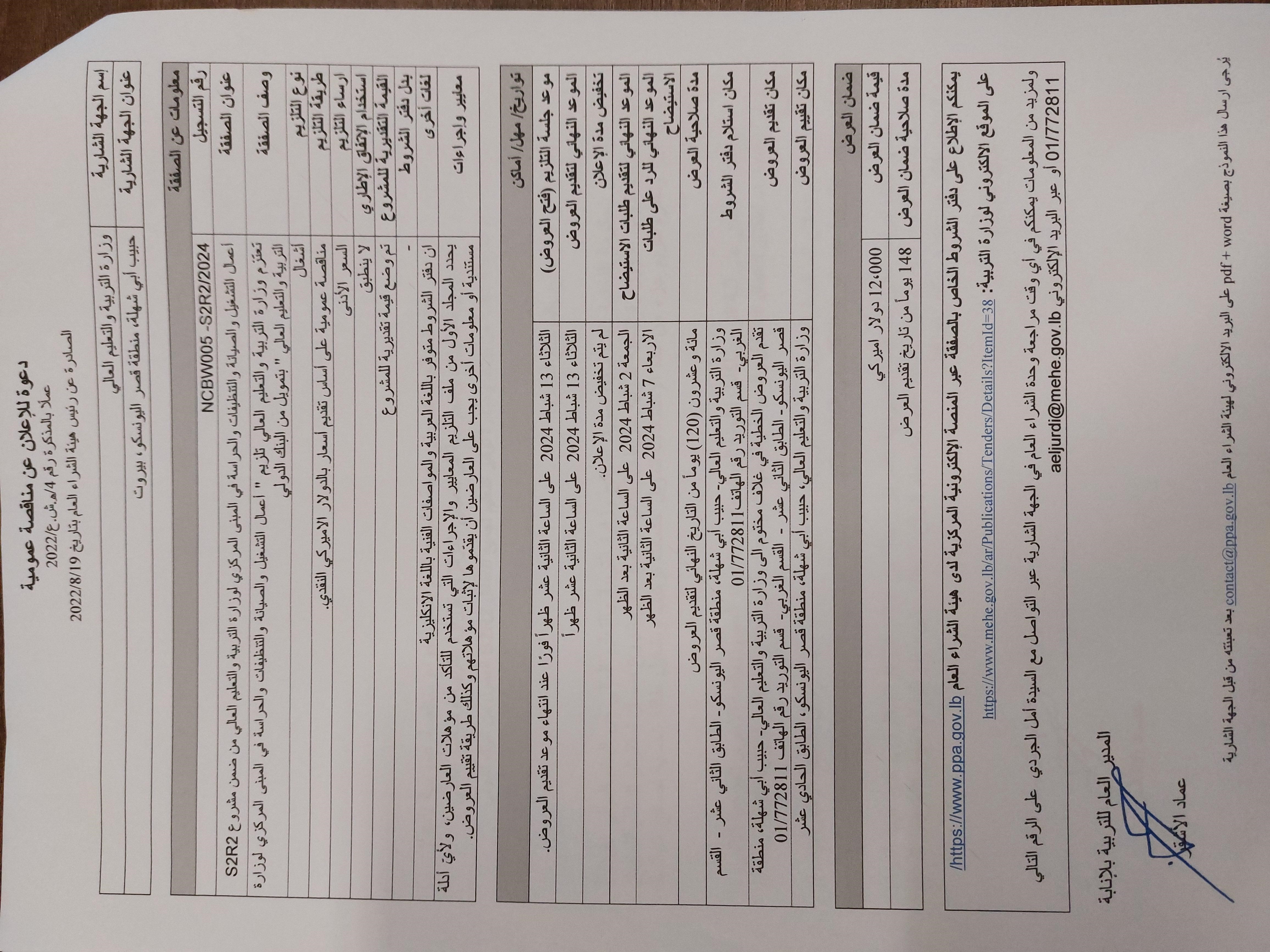 يُطلب إلى كافة الجهات الشارية أو المتعاقدة الخاضعة لأحكام قانون الشراء العام ومن أجل التحضير لتمكينها من الإعلان على المنصة الإلكترونيّة المركزيّة لدى هيئة الشراء العام، الإلتزام بالمذكرة رقم 14/ه.ش.ع/2022.