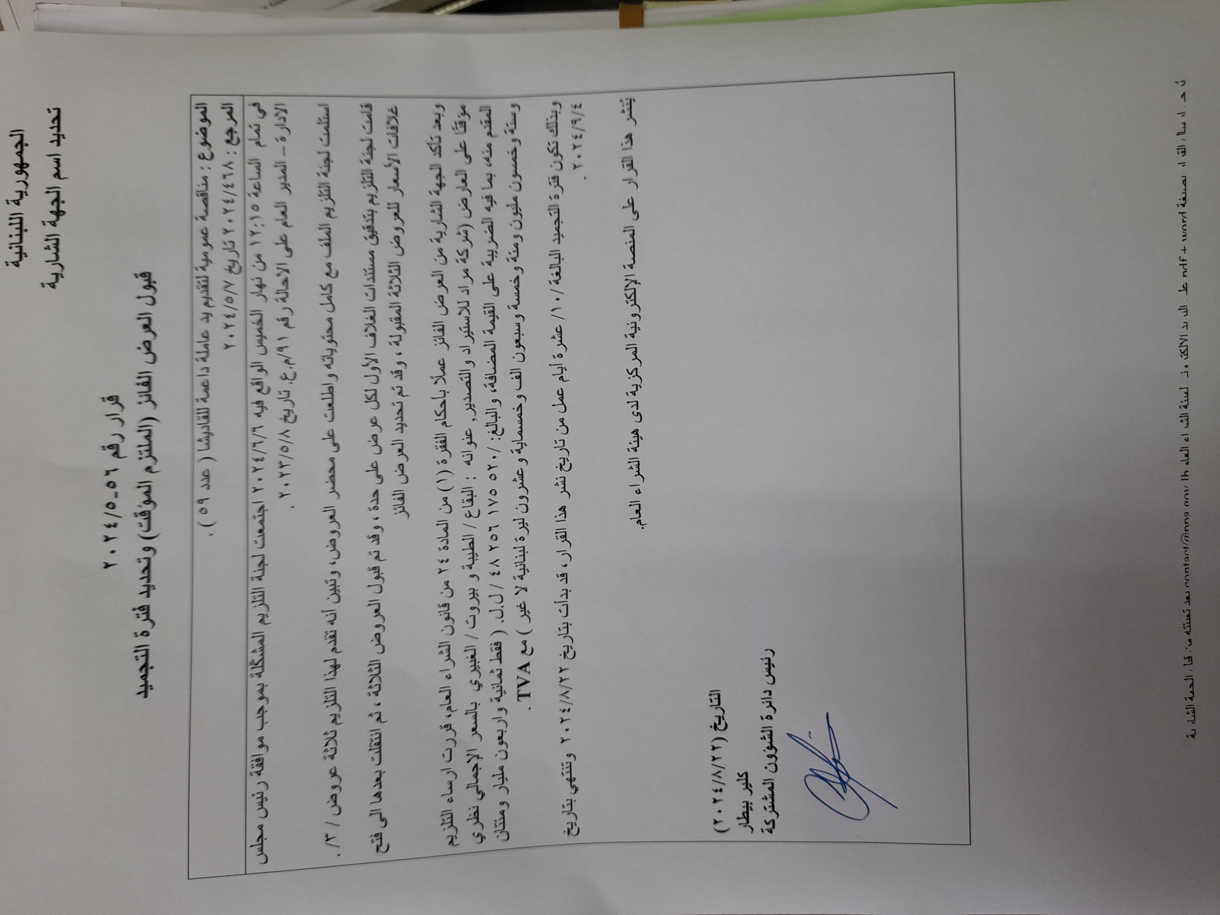 قرار رقم 9/هـ.ش.ع/2023: تحديد أُسس تأليف لجان التلزيم والاستلام لدى الجهات الشارية