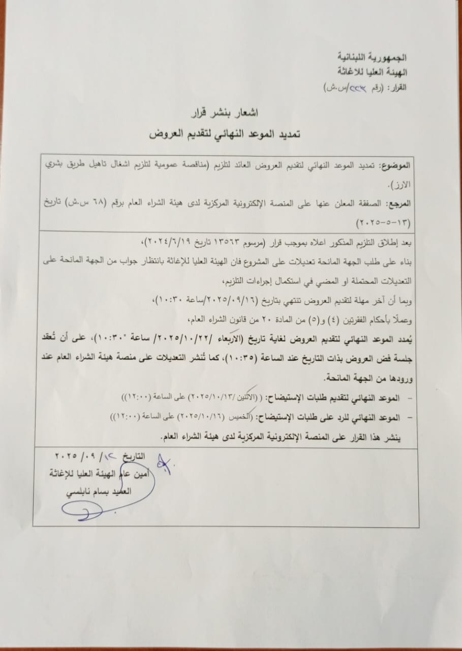 يُطلب إلى كافة الجهات الشارية أو المتعاقدة الخاضعة لأحكام قانون الشراء العام ومن أجل التحضير لتمكينها من الإعلان على المنصة الإلكترونيّة المركزيّة لدى هيئة الشراء العام، الإلتزام بالمذكرة رقم 14/ه.ش.ع/2022.