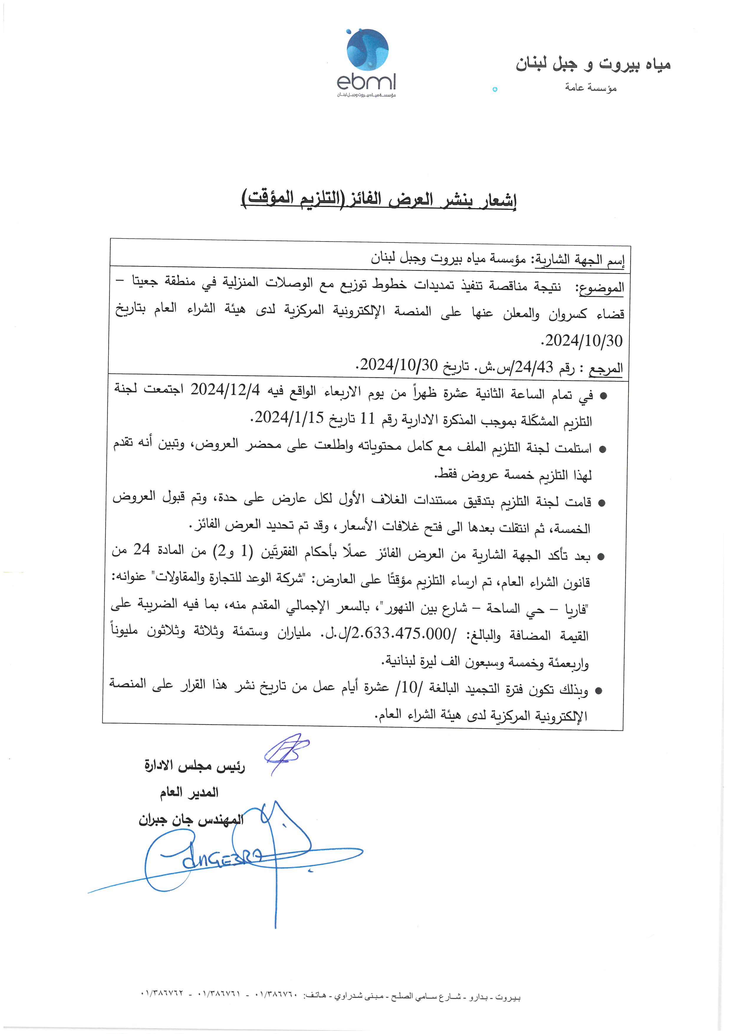 Date of the administrative and technical bid opening session 2024-12-04 12:00:00