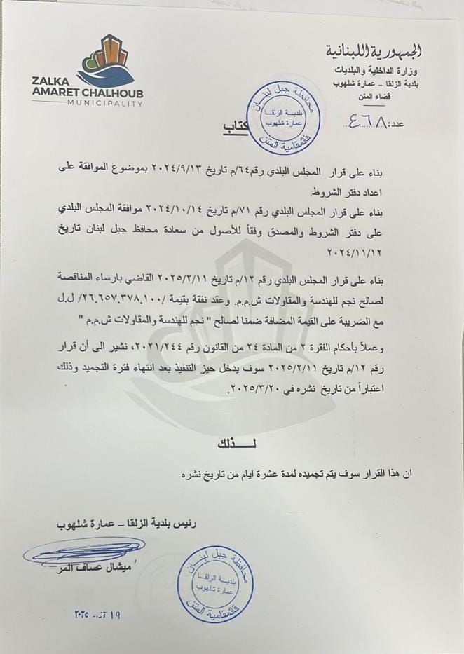 جدول توضيحي للقانون رقم 21 تاريخ 17/7/2025 (تفعيل عمل البلديات / صلاحيات المحافظ و القائمقامين)