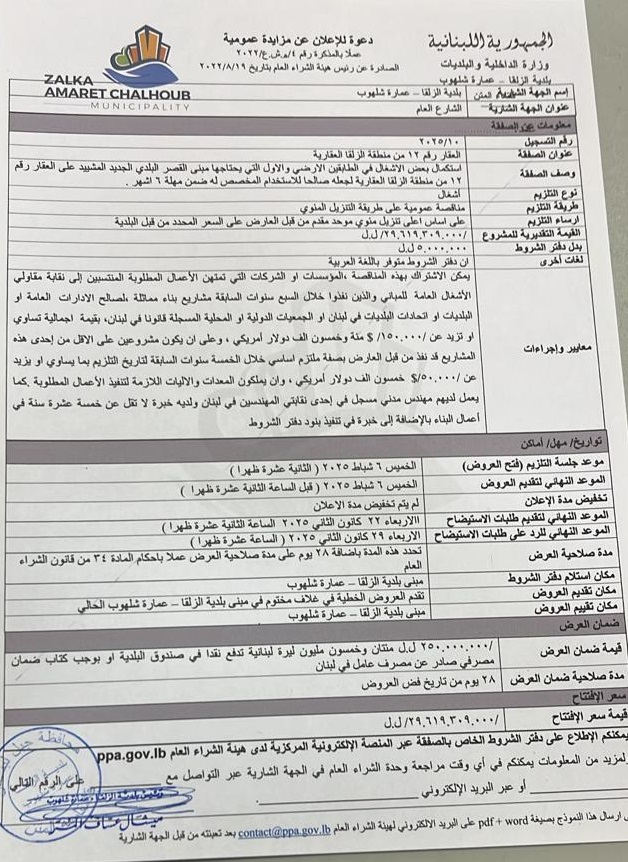 Public tender announced by Electricité du Liban