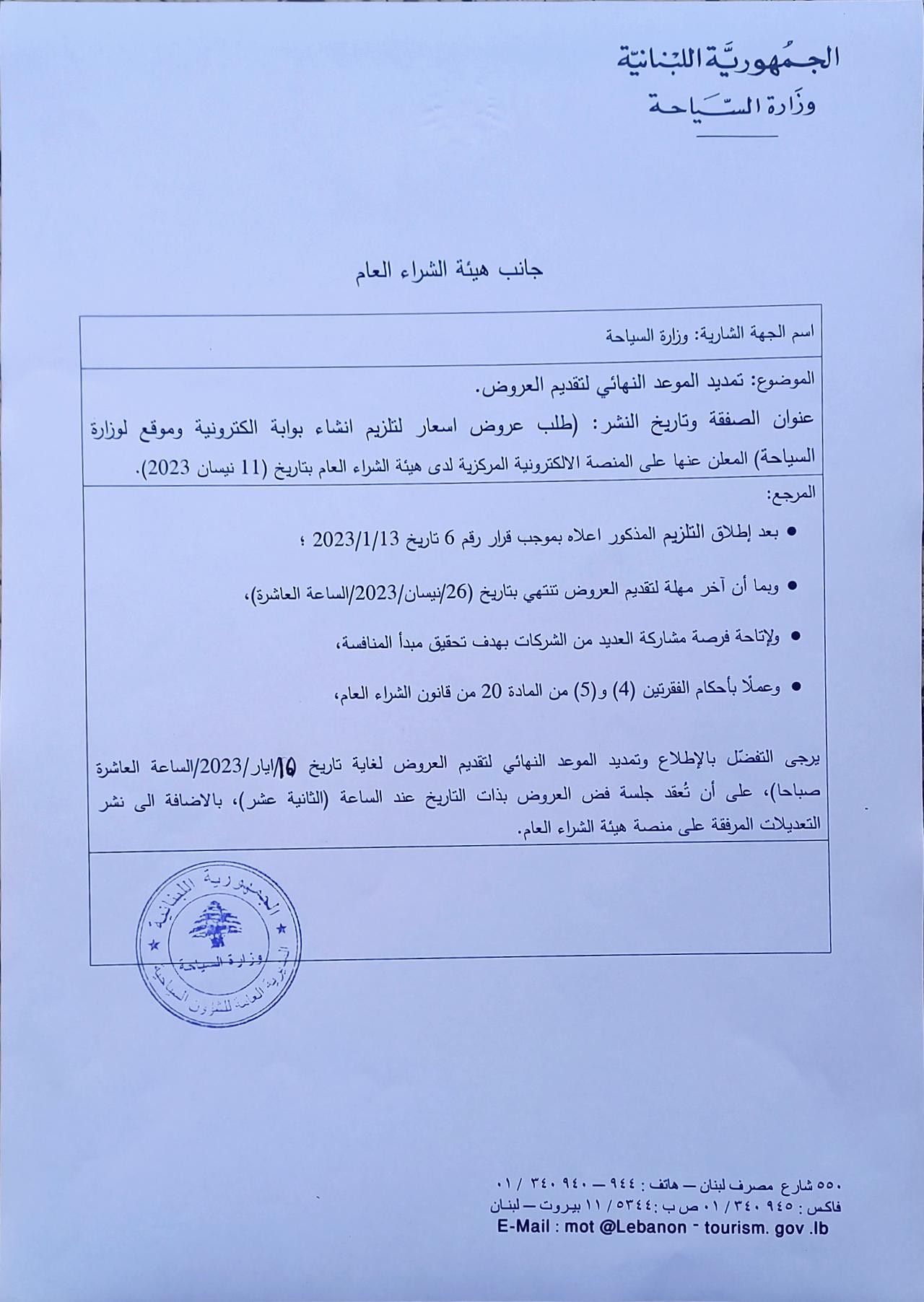 يُطلب إلى كافة الجهات الشارية أو المتعاقدة الخاضعة لأحكام قانون الشراء العام ومن أجل التحضير لتمكينها من الإعلان على المنصة الإلكترونيّة المركزيّة لدى هيئة الشراء العام، الإلتزام بالمذكرة رقم 14/ه.ش.ع/2022.