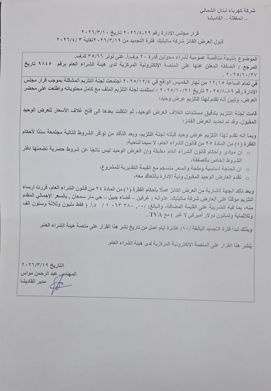 مذكرة رقم 4/ه.ش.ع./٢٠٢٦ موجَّهة إلى كافَّة الجهات الخاضعة لأحكام قانون الشراء العام بموضوع العرض المرتفع سعره بشكل غير اعتيادي