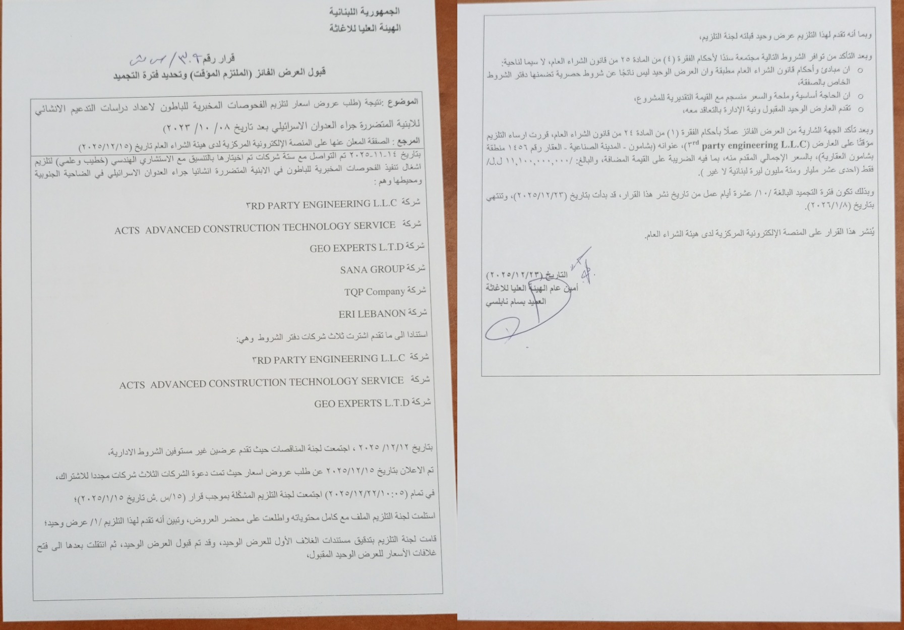 قرار رقم 9/هـ.ش.ع/2023: تحديد أُسس تأليف لجان التلزيم والاستلام لدى الجهات الشارية