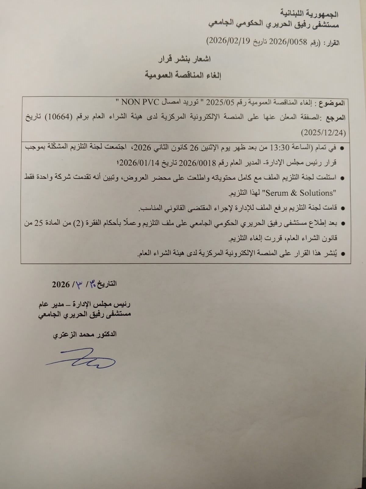 | Date of procuring announcement : |