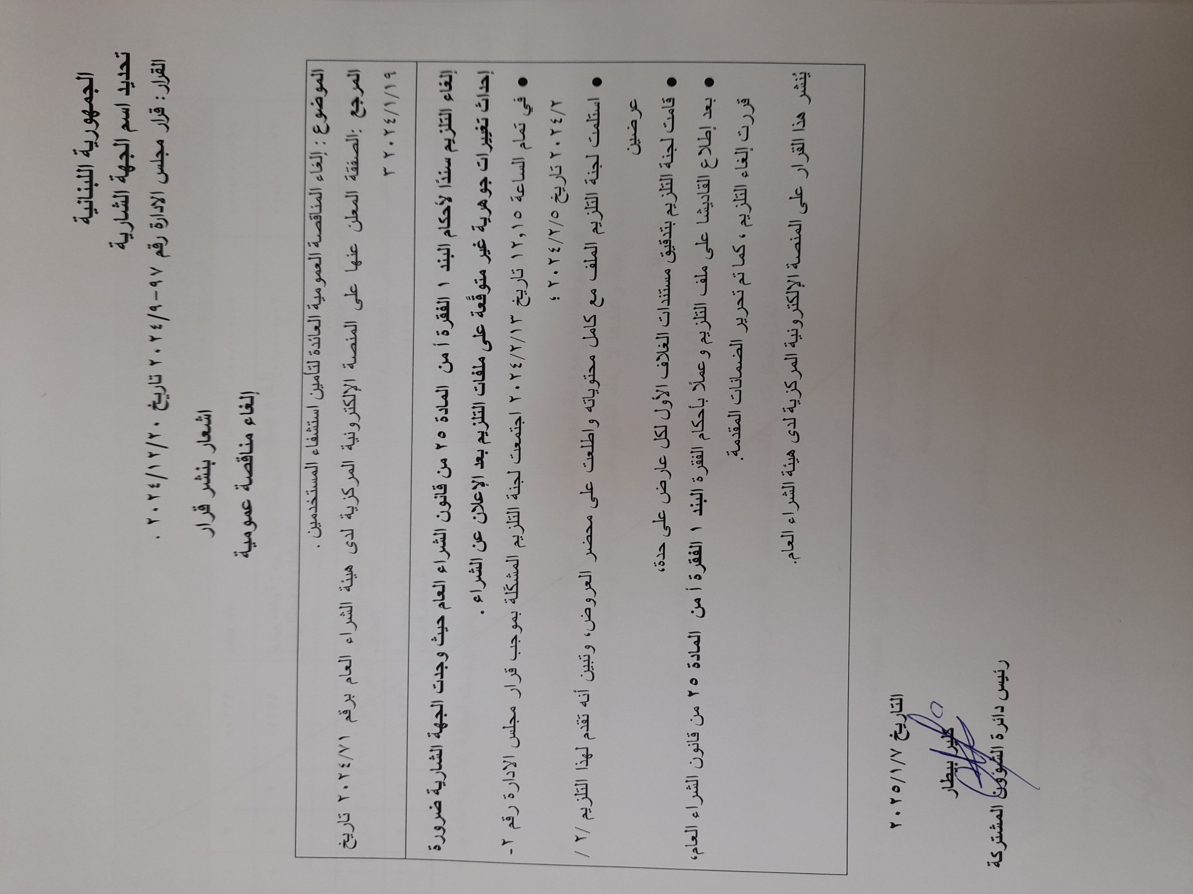 قرار رقم 9/هـ.ش.ع/2023: تحديد أُسس تأليف لجان التلزيم والاستلام لدى الجهات الشارية