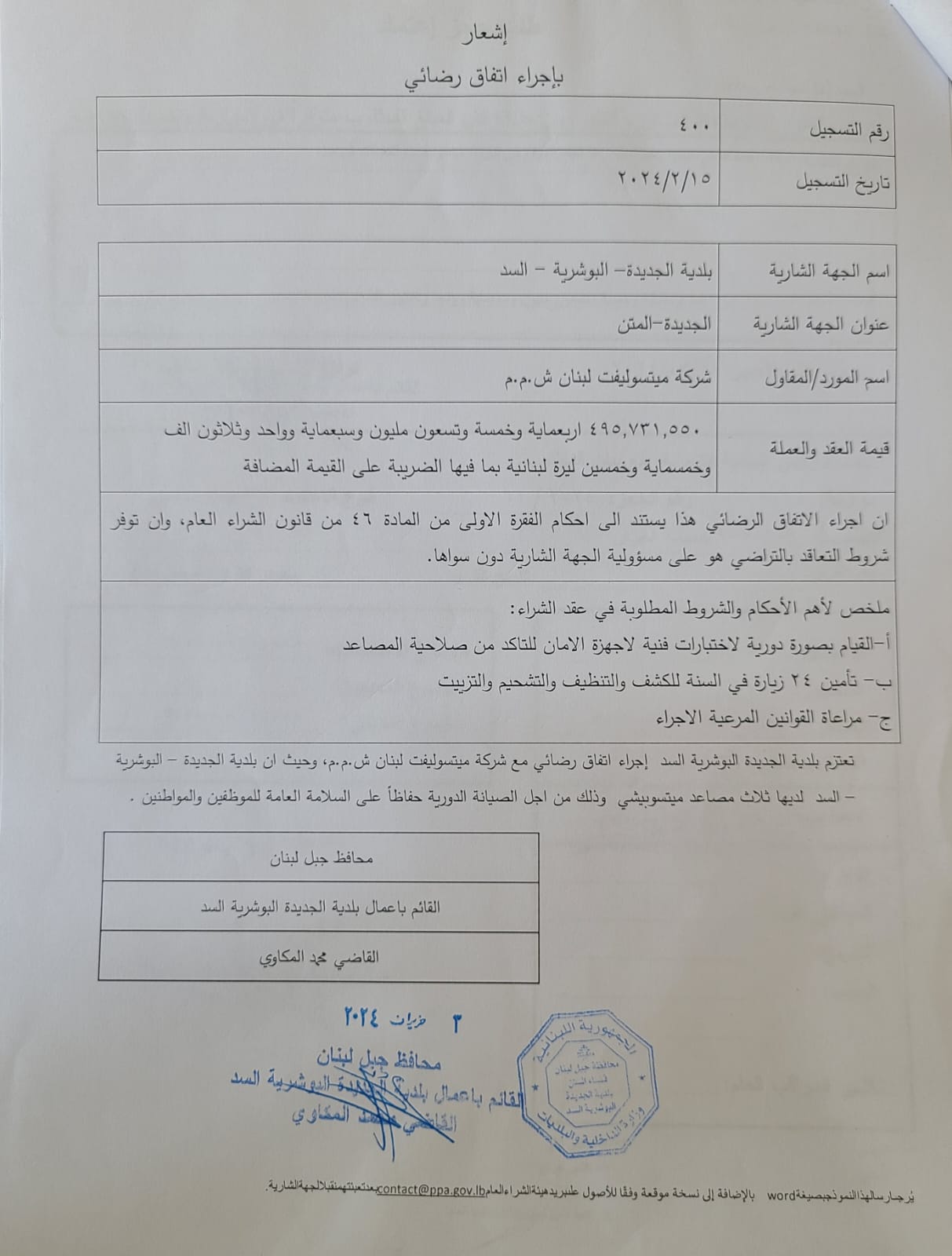 مذكرة رقم 6/ه.ش.ع./٢٠٢٦ موجَّهة إلى كافَّة الجهات الخاضعة لأحكام قانون الشراء العام بموضوع تنظيم عقد بين الجهة الشارية والملتزم المؤقت