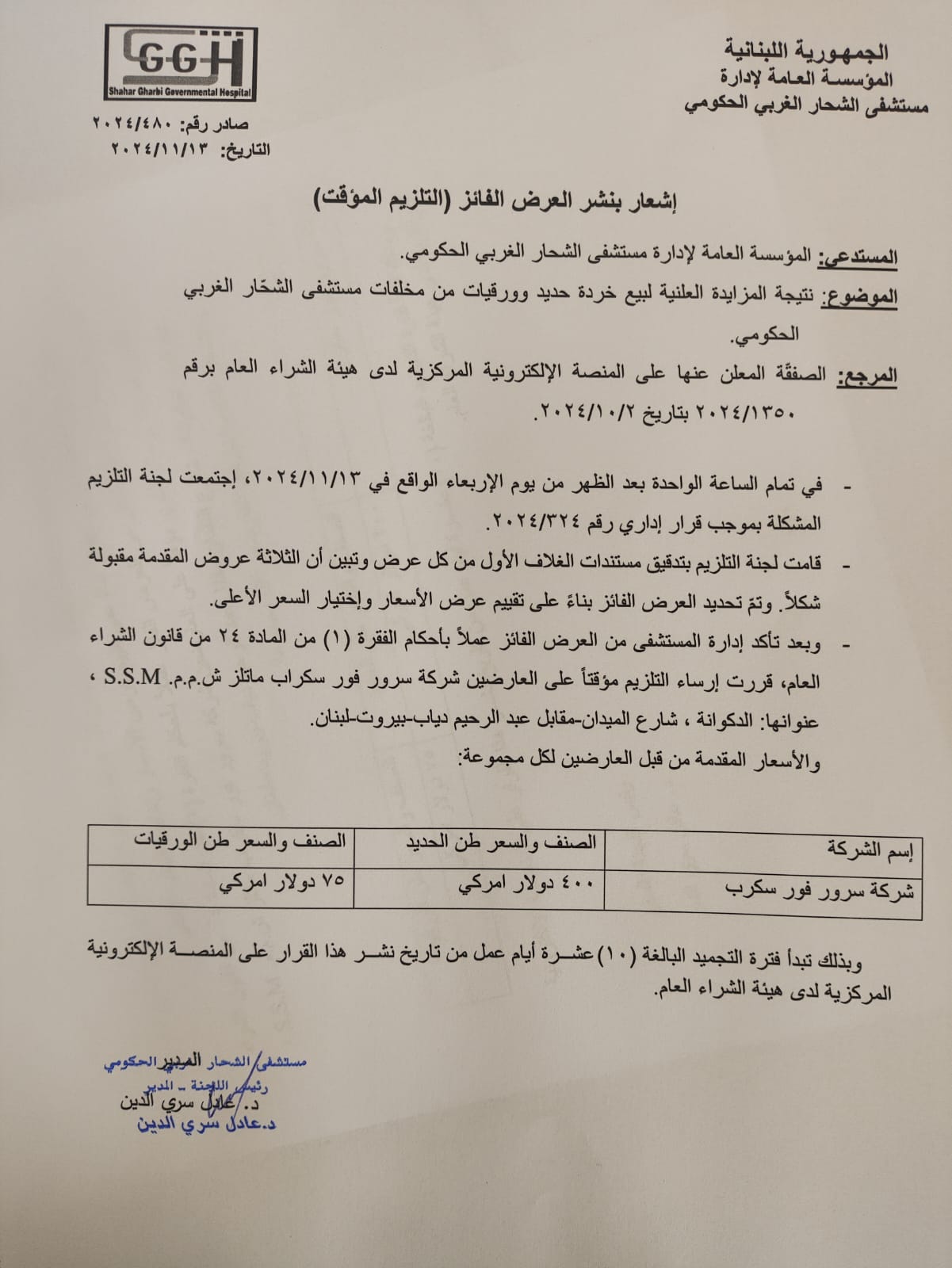 مذكرة رقم 4/ه.ش.ع./٢٠٢٦ موجَّهة إلى كافَّة الجهات الخاضعة لأحكام قانون الشراء العام بموضوع العرض المرتفع سعره بشكل غير اعتيادي