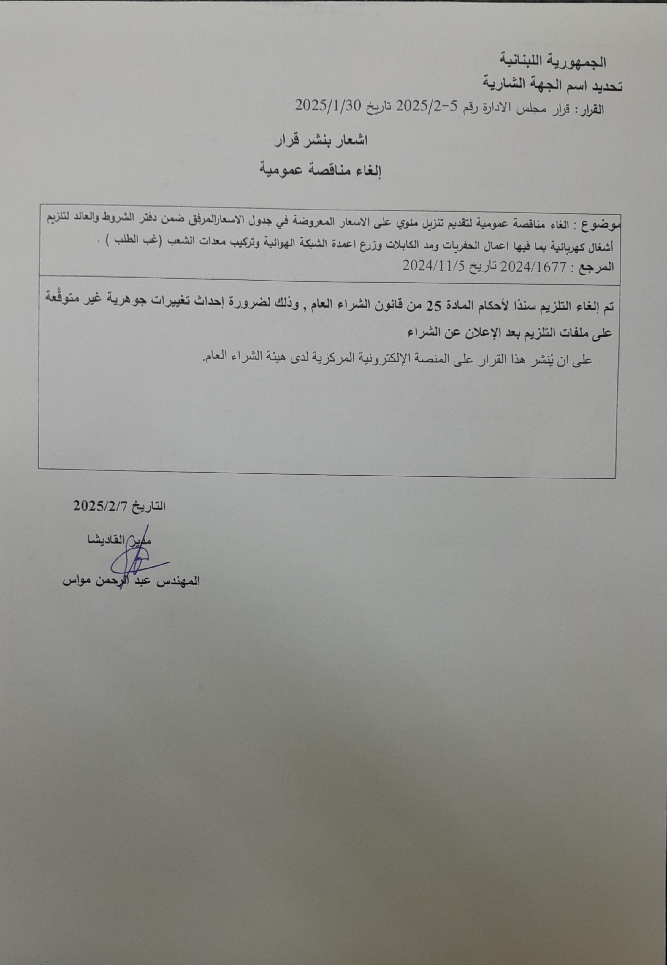 يُطلب إلى كافة الجهات الشارية أو المتعاقدة الخاضعة لأحكام قانون الشراء العام ومن أجل التحضير لتمكينها من الإعلان على المنصة الإلكترونيّة المركزيّة لدى هيئة الشراء العام، الإلتزام بالمذكرة رقم 14/ه.ش.ع/2022.
