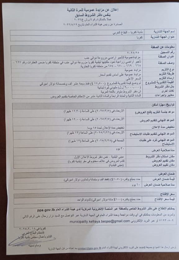 يُطلب إلى كافة الجهات الشارية أو المتعاقدة الخاضعة لأحكام قانون الشراء العام ومن أجل التحضير لتمكينها من الإعلان على المنصة الإلكترونيّة المركزيّة لدى هيئة الشراء العام، الإلتزام بالمذكرة رقم 14/ه.ش.ع/2022.