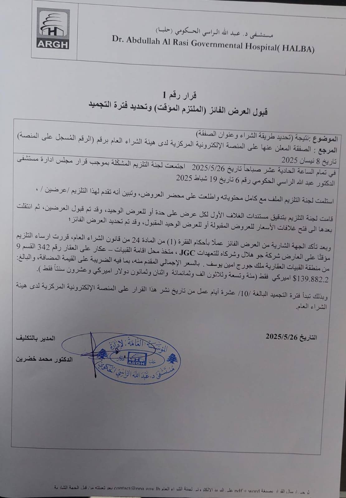 مذكرة رقم 4/ه.ش.ع./٢٠٢٦ موجَّهة إلى كافَّة الجهات الخاضعة لأحكام قانون الشراء العام بموضوع العرض المرتفع سعره بشكل غير اعتيادي