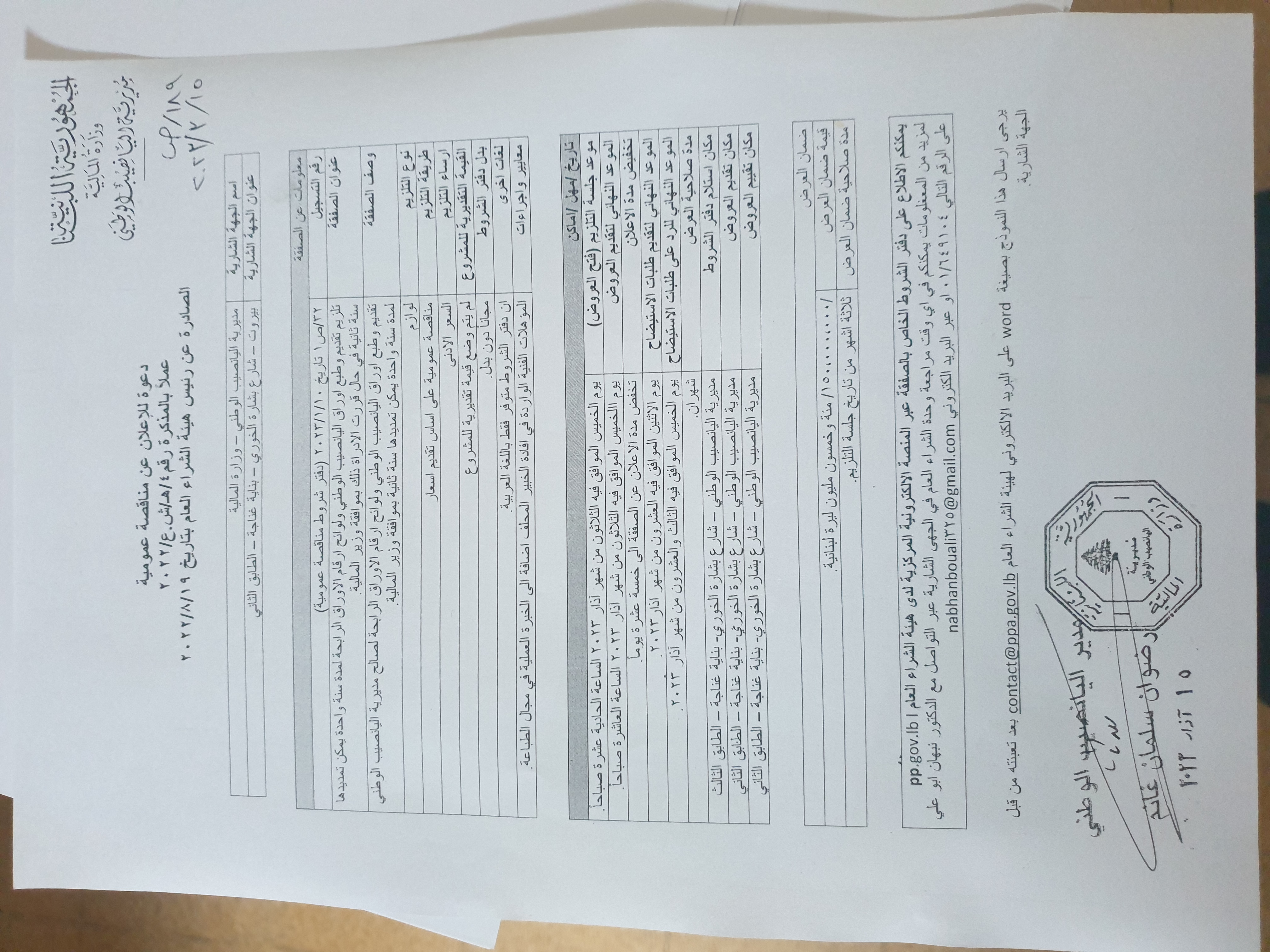 يُطلب إلى كافة الجهات الشارية أو المتعاقدة الخاضعة لأحكام قانون الشراء العام ومن أجل التحضير لتمكينها من الإعلان على المنصة الإلكترونيّة المركزيّة لدى هيئة الشراء العام، الإلتزام بالمذكرة رقم 14/ه.ش.ع/2022.