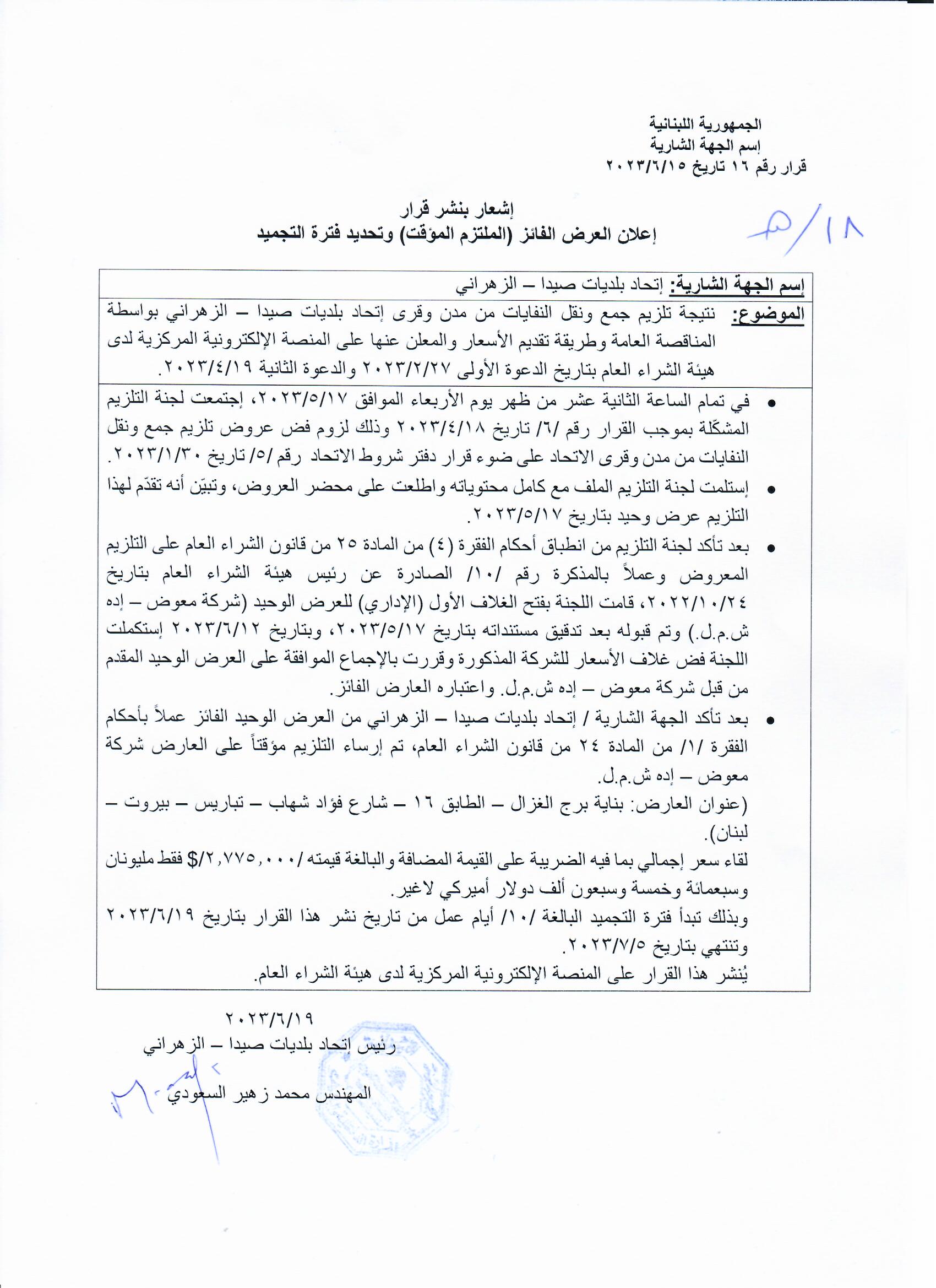 قرار رقم 9/هـ.ش.ع/2023: تحديد أُسس تأليف لجان التلزيم والاستلام لدى الجهات الشارية