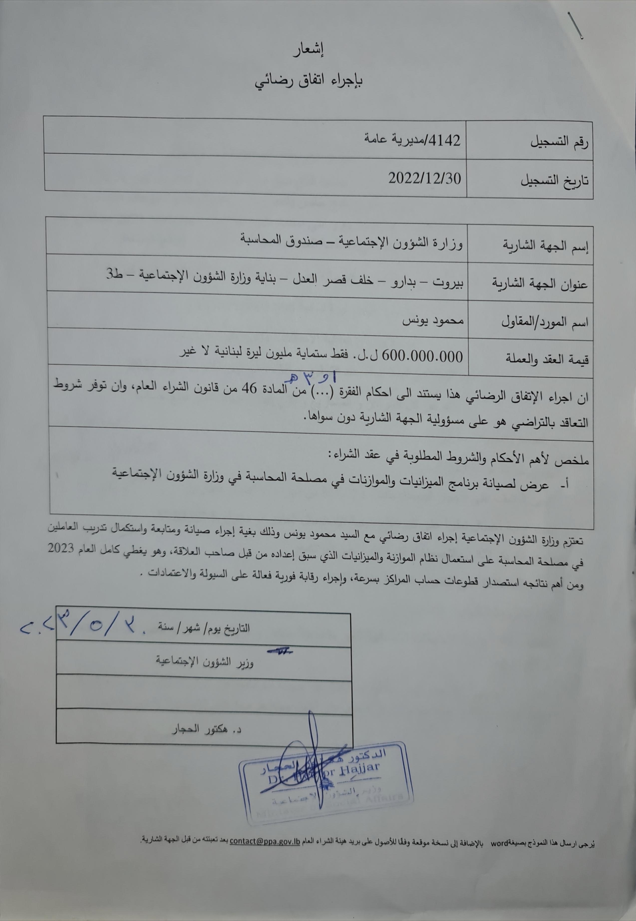 مذكرة رقم 6/ه.ش.ع./٢٠٢٦ موجَّهة إلى كافَّة الجهات الخاضعة لأحكام قانون الشراء العام بموضوع تنظيم عقد بين الجهة الشارية والملتزم المؤقت