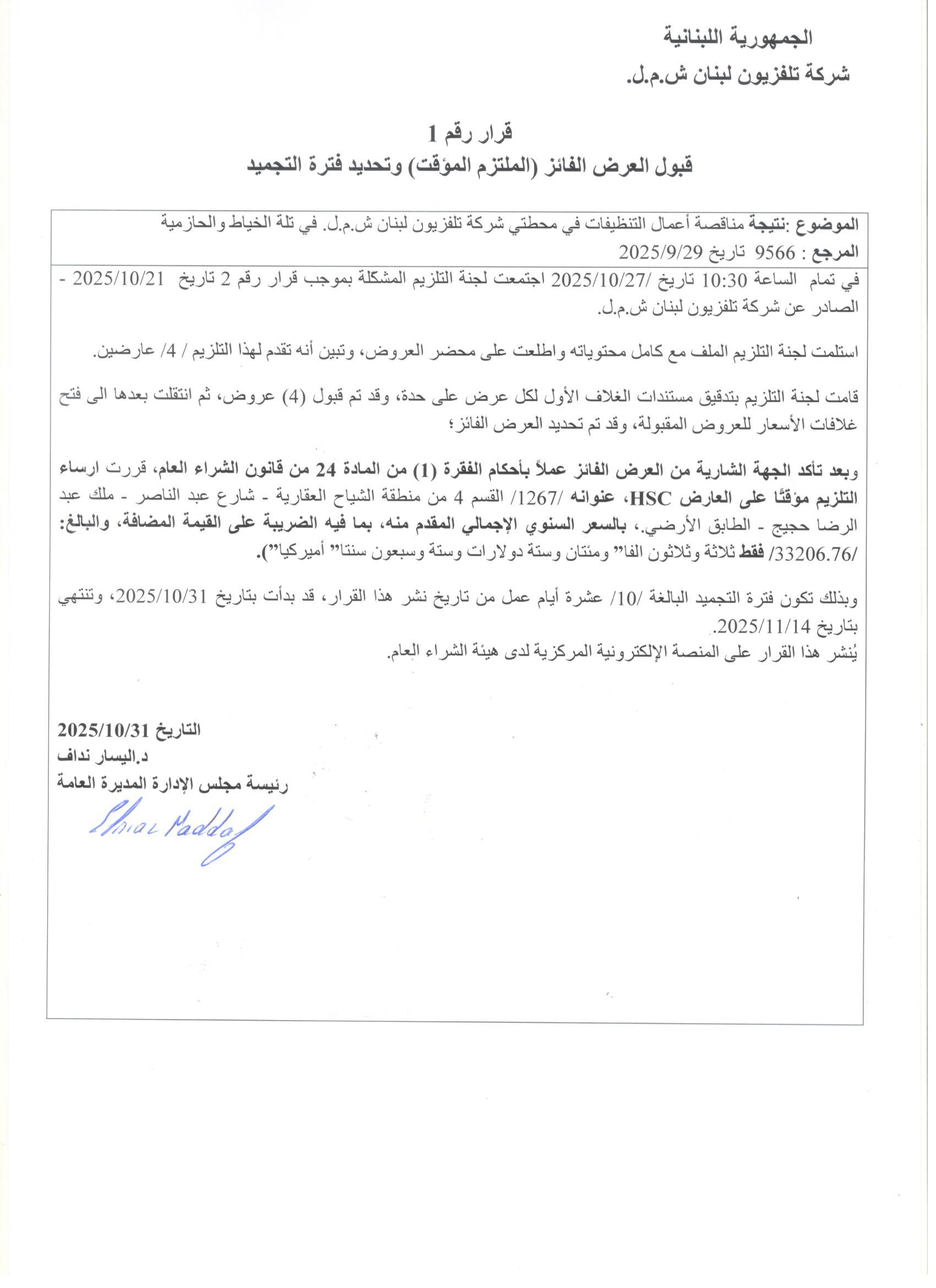 مذكرة رقم 6/ه.ش.ع./٢٠٢٦ موجَّهة إلى كافَّة الجهات الخاضعة لأحكام قانون الشراء العام بموضوع تنظيم عقد بين الجهة الشارية والملتزم المؤقت