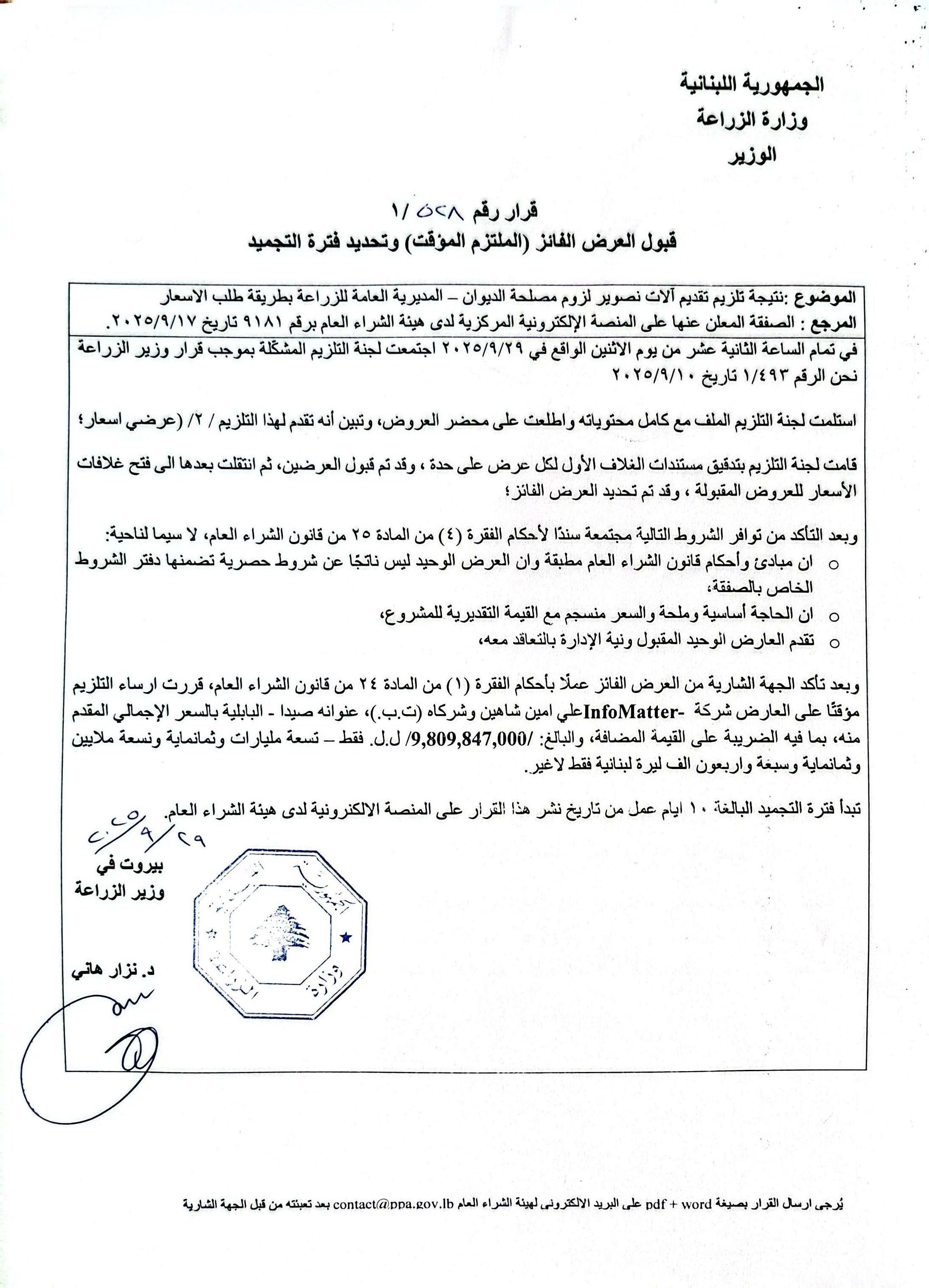 مذكرة رقم 6/ه.ش.ع./٢٠٢٦ موجَّهة إلى كافَّة الجهات الخاضعة لأحكام قانون الشراء العام بموضوع تنظيم عقد بين الجهة الشارية والملتزم المؤقت